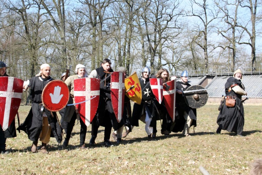 130407-phe-Hospitaalridders  08De historische vereniging De Hospitaalridders hield vanmiddag een training bij kasteel Heeswijk. Ze marcheerden, voerden tweegevechten en lieten charges zien. De toeschouwers kregen de nodige uitleg. Deze historische vereniging laat vervlogen tijden herleven. Als reizende kruisvaarders zijn ze te vinden op allerhande middeleeuwse evenementen, musea, scholen, enzovoorts. Met militair vertoon en wapengekletter, religieuze vroomheid en kennis van de 13e eeuwse medische kunsten laten ze zien hoe het leven van de kruisvaarders er in vroegere tijden uit zag.