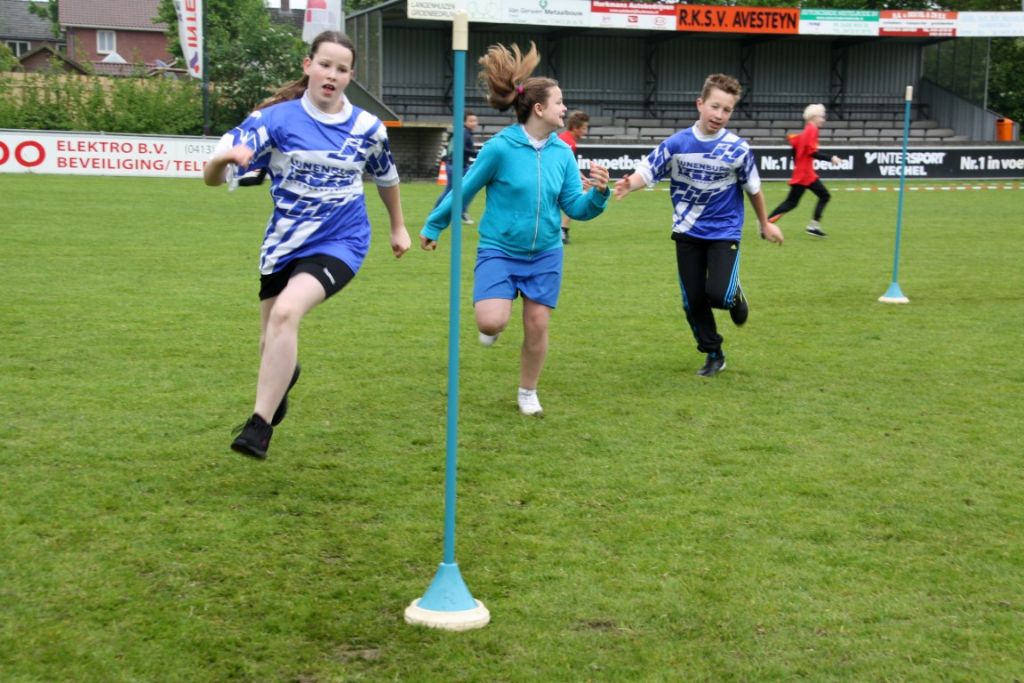 130517-phe-ScholensportdagVandaag was de jaarlijkse scholensportdag op de velden van RKSV Avesteyn en MHC HDL in Dinther. De leerlingen van groepen 5, 6, 7 en 8 van de basisscholen in Heeswijk, Dinther en Loosbroek streden fanatiek, maar vooral sportief om de prijzen. Hiervoor moesten zij hun talenten laten zien op tal van verschillende sporten, zoals handbal, voetbal, slagbal en korfbal. Maar ook andere onderdelen als speerwerpen, sprinten, verspringen, estafette, kogelstoten, touwtje springen, doelstrappen en duurloop kwamen aan bod.