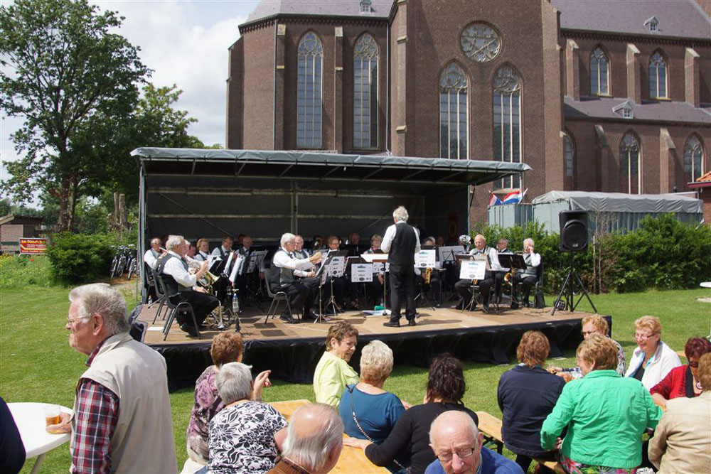 130629-jvdb-BSO 03Het Bernhezer Senioren Orkest heeft zaterdag 29 juni haar eerste lustrum gevierd. In de ontmoetingstuin achter het Servaas gebouw werd onder zomerse omstandigheden een muzikale middag georganiseerd.