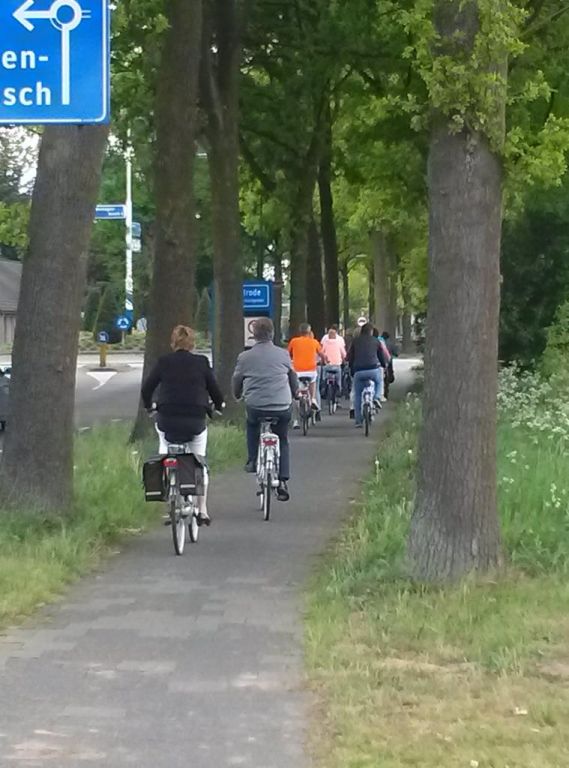 Sommigen bleven hangen in 'de Fuik' op het terras, terwijl de pauzeplaats pas later was gepland. Via de Wamberg werd theetuin Aardrijk bereikt. Hier was het een gezellige drukte en werden alle hoekjes in de theetuin heel goed benut. Vanaf Aardrijk ging het via de Heikantsehoeve en de Kersouwe naar de Meerstraat.
