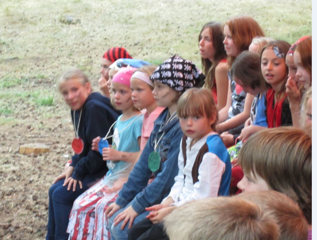 Toen zaterdag iedereen bij elkaar waren werd de vlag gehesen om het kamp te openen. Ondertussen werd het kampverhaal verteld. Dit jaar kwamen we met zijn alle in een schip aan op een onbewoond eiland. Het schip was aan flarden en de kapitein en zijn stuurman vroegen de kinderen hulp, de kinderen moesten meehelpen op zoek te gaan naar de mast, stuurwiel, schatkaart en kompas. De leden hebben gelukkig het verhaal mee op kunnen lossen en we zijn uiteindelijk weer veilig in de veldzeestraat geëindigd.