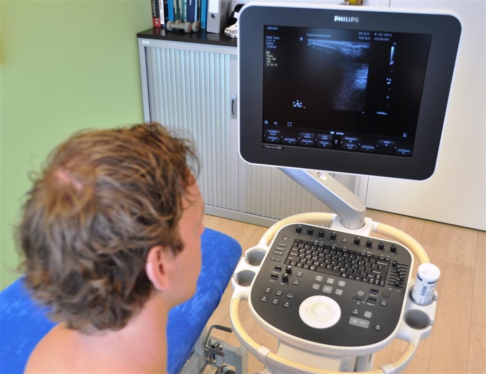 121008-wvdl-fysio Maatwerk 1Het voordeel van echografie is dat er een betere uitspraak gedaan kan worden over wat er bij een patiënt aan de hand is. Zo kan er gerichter een fysiotherapeutische behandeling opgestart worden of wordt er in overleg met de huisarts een ander traject opgestart (bijvoorbeeld een consult bij een orthopeed).
