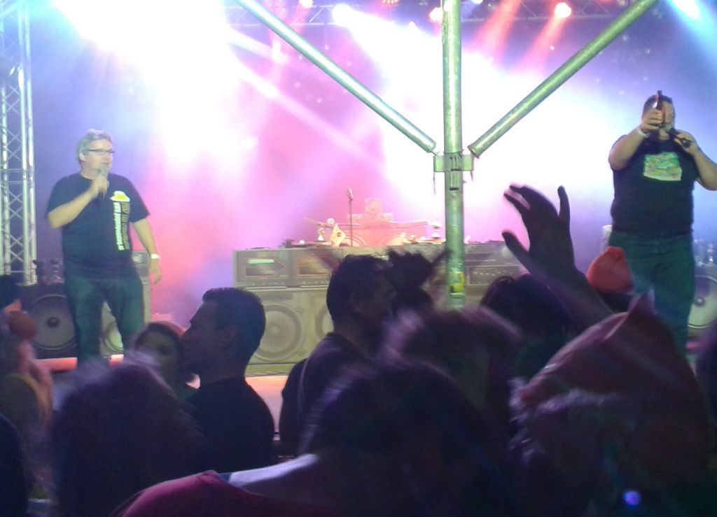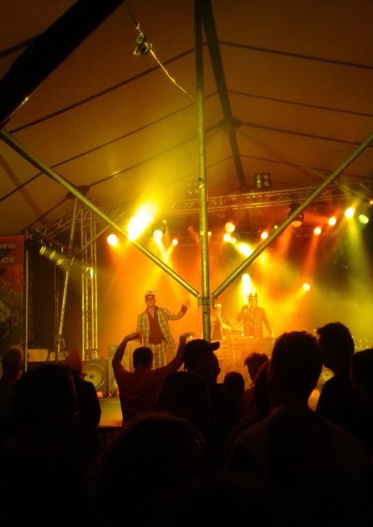 ’s Middags stroomde de camping al vol met (voornamelijk) jongeren uit alle windstreken van het land. Een gezellige, maar nu al natte bedoeling. Dat mag de pret zeker niet drukken en de meesten vertrekken om 18:00 uur dan ook direct naar het festivalterrein, samen met de vele bezoekers die met fiets of auto de bordjes naar het terrein weten te vinden. De (E-)tickets worden gecheckt bij zowel kassa als muntenbalie en het feest kan losgaan. MarcelV draait de eerste uurtjes aan elkaar, totdat het feestduo Pap & Pudding het podium betreedt. Met carnavaleske liedjes over belangrijke zaken in het leven als confetti in je bier en de omvangrijke voorgevel van Mariëlle – belangrijke zaken voor iemand met al behoorlijk wat pintjes achter de kiezen dus – weten zij een flinke dosis humor de tent in te slingeren. Na deze feestmuziek is het de beurt aan de drie jonge mannen van de Loco Loco Discoshow, bekend van hun optredens (in eigen tent) op festivals als Paaspop en Festyland. Ook in Heeswijk weten zij het publiek voor zich te winnen.
