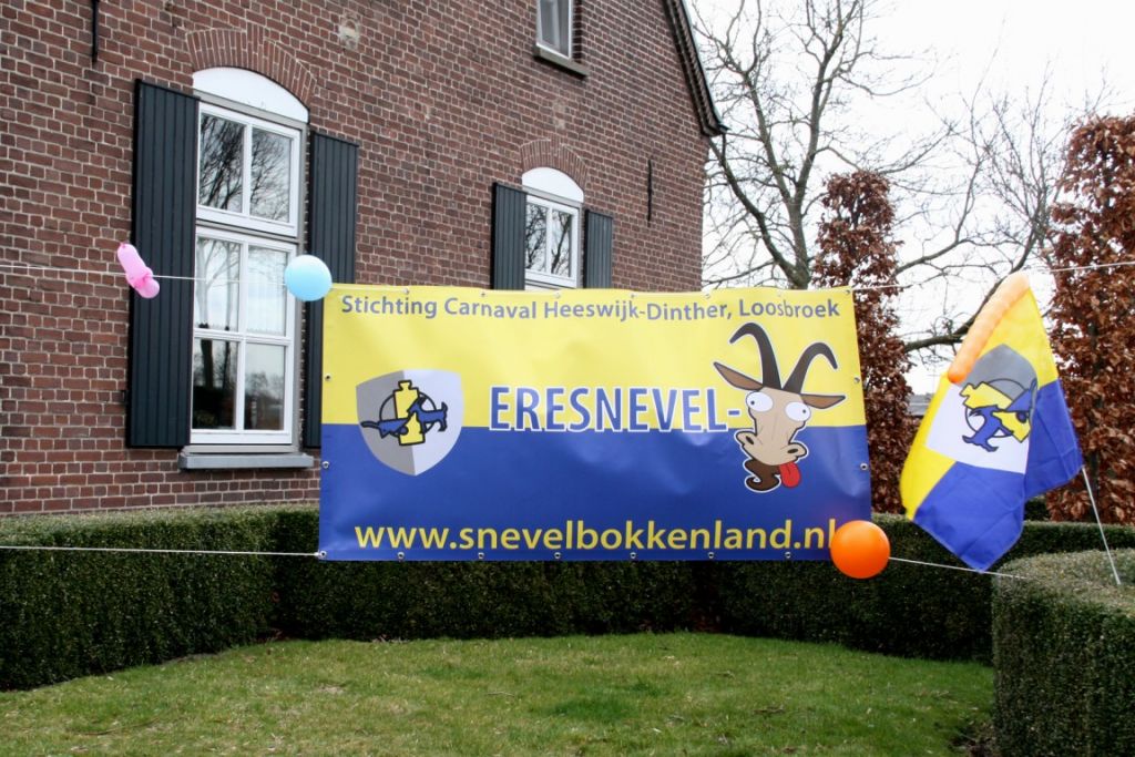Eresnevelgeit Wilma Brekelmans werd vanmiddag verrast door een bezoek van Prins Bart d'n Urste met zijn hele gevolg. Een spandoek voor het huis maakt elke voorbijganger duidelijk dat hier een bijzonder iemand woont.