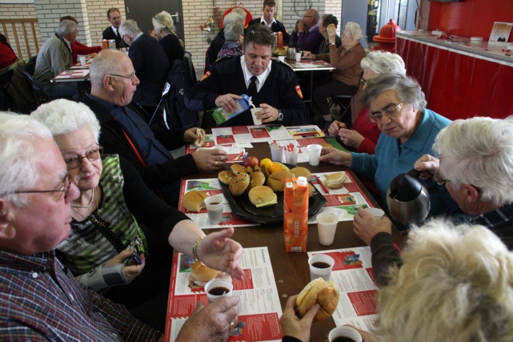 Na de rondleiding schoof iedereen aan voor een smakelijke lunch, terwijl een brandweerman of brandweervrouw tips en adviezen gaf over verbetering van de brandveiligheid in huis.
