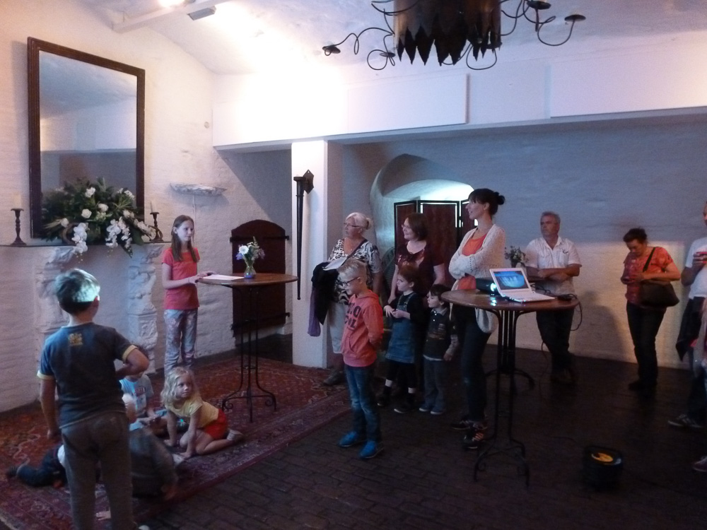 Productieleider Ad Donkers sprak het publiek toe aan het begin van de voorstelling. 'Lieve kinderen jullie zijn de éérsten die deze voorstelling zullen gaan zien. Spannend hè?' Maar toen reageerden ze allemaal nogal nonchalant, zo van: dat valt wel mee.