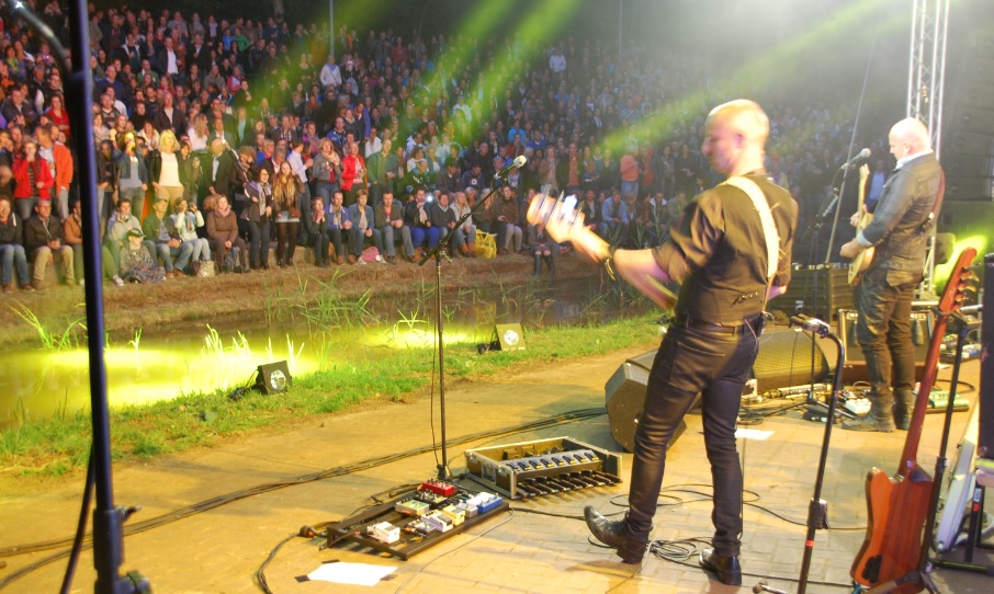 Twee jaar geleden stond Blof voor het eerst op het podium van natuurtheater De Kersouwe. Dit seizoen mochten ze het weer zoetjes over doen met weer een uitverkocht theater (klik hier voor foto's). Zoals Pascal, de zanger van Blof, het verwoordde; in Heeswijk-Dinther kan er niemand meer bij in het theater. Gelukkig had het publiek de poncho’s thuis kunnen laten en zelfs Blof had op Facebook gepost zich voorbereid te hebben met anti muggenspray. Blof beloofde een lang avondje te spelen en deze belofte kwamen ze meer dan na.