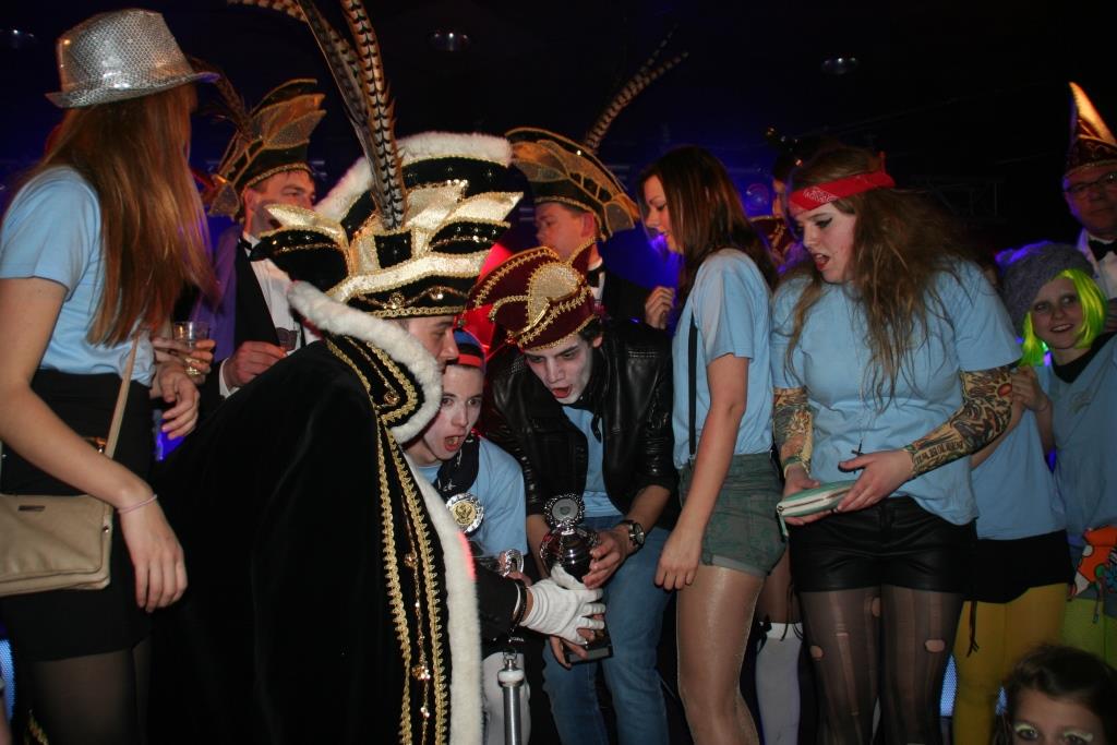In een bomvolle zaal de Toren werd vanavond tegen half 7 de prijswinnaar van de categorie 'Wagens' bekend gemaakt. Voor denegende keer in successie ging de 1e prijs naar Jong en Oud te Samen, die met 142 punten CV de Eikenhoek (132 punten) en buurtvereniging 't Oort (115 punten) ruim voor bleven. Al deed Ad van Lieshout het voorkomen alsof het nog heel spannend was geweest. Op het podium barstte hierna het feest bij Jong en Oud los.