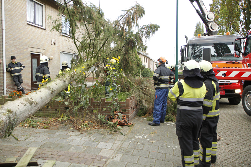“Wat zou dat zijn? Misschien wel een zolderraam uit het dak gewaaid; ik naar boven en ik zag het meteen. Takken op het zolderraam. De brandweer was al gebeld door mijn buurvrouw, Marjon van Herpen. De boom komt uit haar tuin aan de Kerkstaat 14”.
