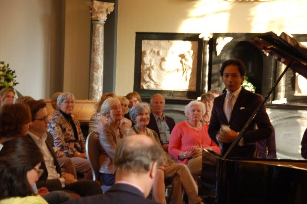 Kasteel Heeswijk in Dinther, zoals Wibi Soerjadi het zelf noemde, had in de Wapenzaal een intieme setting klaargezet, met de vleugel als middelpunt. Hierdoor kon iedereen hem van heel dichtbij zien spelen.