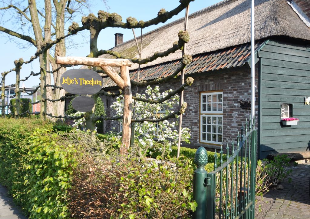 De theetuin van Jet is groot met gezellige zitjes. De tuin grenst aan het mooie verbouwde voormalig Abdijhuis. (Heilarensestraat 60.)