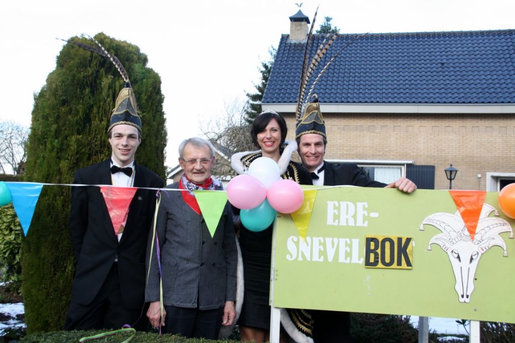 Prinses Marianne en haar gevolg hebben vanmiddag Henk Bronts in het zonnetje gezet als Eresnevelbok. Met een groot bord in de voortuin kan het geen enkele voorbijganger ontgaan dat hier een bijzonder iemand woont. Trots poseerde Henk samen met Prinses Marianne d'un Urste.
