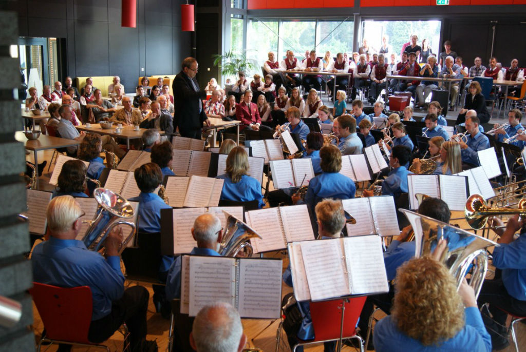 Koninklijke fanfare Sint Willibrord en Fanfare Sint Lambertus uit Nistelrode hielden vanochtend hun uitwisselingsconcert in de aula van gymnasium Bernrode in Heeswijk. Beide orkesten bereiden zich voor op hun concoursdeelname later dit jaar, waarbij zij hun niveau laten toetsen door een deskundige jury. Een goed gevulde aula genoot van een mooi concert, waarbij beide orkesten de podiumspanning al enigszins konden voelen.