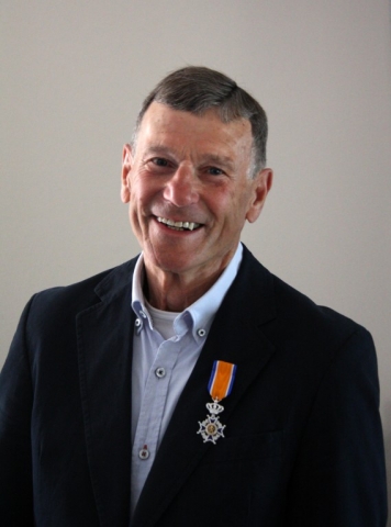 Marieke Moorman kwam Theo de versierselen opspelden wegens zijn benoeming tot Lid in de Orde van Oranje-Nassau.
