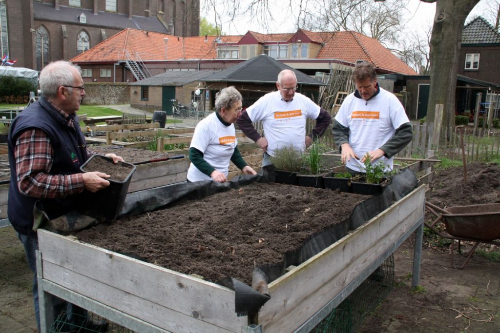 Onder leiding van Wim Dortmans werd een verhoogde tuinbak gemaakt, waarin ouderen kunnen werken tijdens hun wekelijkse dagopvang in ccServaes.