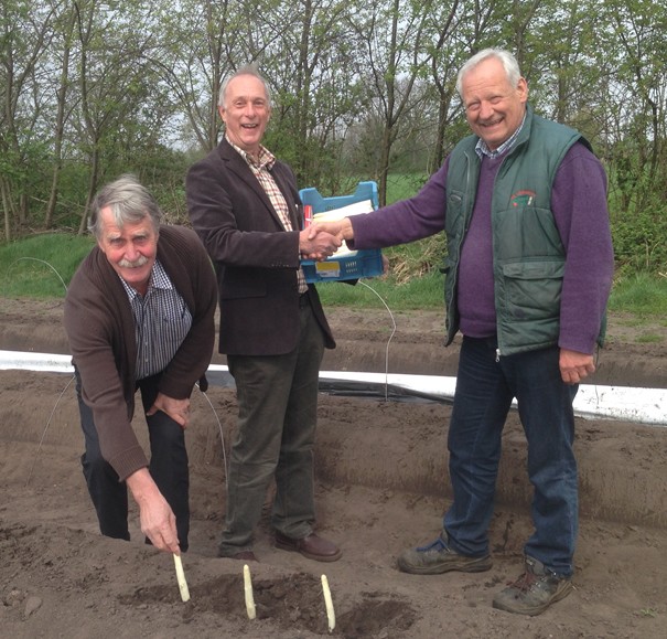 TRV-Bernheze opent het nieuwe aspergeseizoen. Om de opening gestalte te geven overhandigt TRV jaarlijks Bernheze-asperges aan een organisatie die iets bijzonders gaat presteren. Dit jaar overhandigde aspergeteler Jo Verkuijlen namens TRV-Bernheze een kistje Bernheze asperges aan Fairtrade voorzitter Bert Bakker en bestuurslid Theo van Overbeek. Hiermee is de start gegeven voor de Culinaire Asperge Fietsroute van TRV-Bernheze. U kunt happen en trappen langs 4 restaurants en 2 aspergetelers. Kijk op www.TRV-Bernheze.nl voor meer informatie en de gratis route.