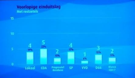 D66 is de grote winnaar geworden tijdens de gemeenteraadsverkiezingen van de gemeente Bernheze, die op woensdag 19 maart plaatshadden. De nieuwbakken partij veroverde verdeeld over alle kernen in Bernheze drie zetels. De nieuwe partij Blanco lijst 7 kwam binnen op twee zetels en mocht rekenen op een groot draagvlak op Heeswijk-Dinther. SP tot slot won één zetel en komt daarmee op vier.