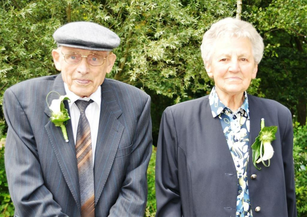 Het echtpaar Martien Kanters (87 jaar) en Nella Slegers (86 jaar) uit Heeswijk-Dinther zijn vandaag 60 jaar getrouwd. Dit vieren zij samen met hun 3 kinderen, twee zonen en een dochter en hun 10 kleinkinderen en 2 achterkleinkinderen. Martien werd geboren in Beek en Donk en Nella in Bakel. Ze leerden elkaar kennen op de kermis en na een jaar verkering trouwde het paar.De eerste jaren van hun huwelijk woonden ze in Bakel en sinds 1967 in de Meerstraat te Heeswijk-Dinther waar ze een boerenbedrijf hadden. Sinds 1992 wonen ze in de Willem Alexanderstraat en genieten in redelijke goede gezondheid van hun oude dag.Burgemeester Boelhouwer kwam namens de gemeente Bernheze het paar feliciteren.