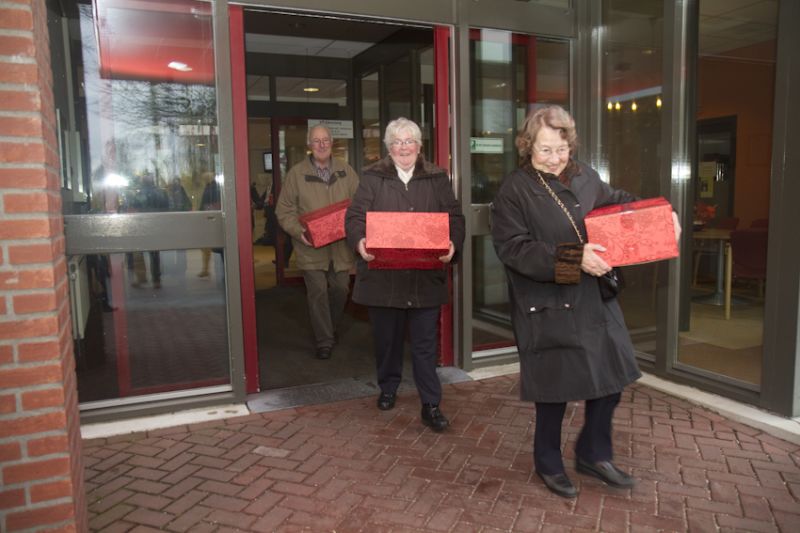 2011_12_bernezorg_kerst_lunch_jacw-11Tijdens de kerstlunch woensdag middag, in de aula van Bernezorg, werd Zr. Roos van den Broek extra in het zonnetje gezet omdat ze 25 jaar als vrijwilliger werkzaam is.