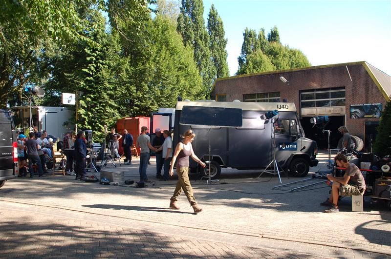 De New Kids zijn in het Maaskantje bij van den Pas banden in Heeswijk druk bezig met de opnames van hun film ‘New Kids Turbo’