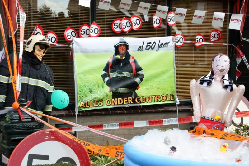 Vandaag wordt groepscommandant van brandweer Heeswijk-Dinther, Henk de Laat, 50 jaar. 'Zijn' mannen en dame van brandweer Heeswijk-Dinther hebben zijn thuin en huis mooi versierd!