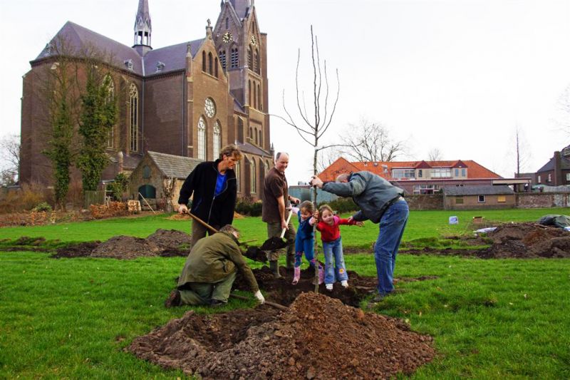 Zaterdag 17 maart j.l. is er een begin gemaakt aan de inrichting van de tuin door het planten van oude rassen hoogstamfruitbomen.