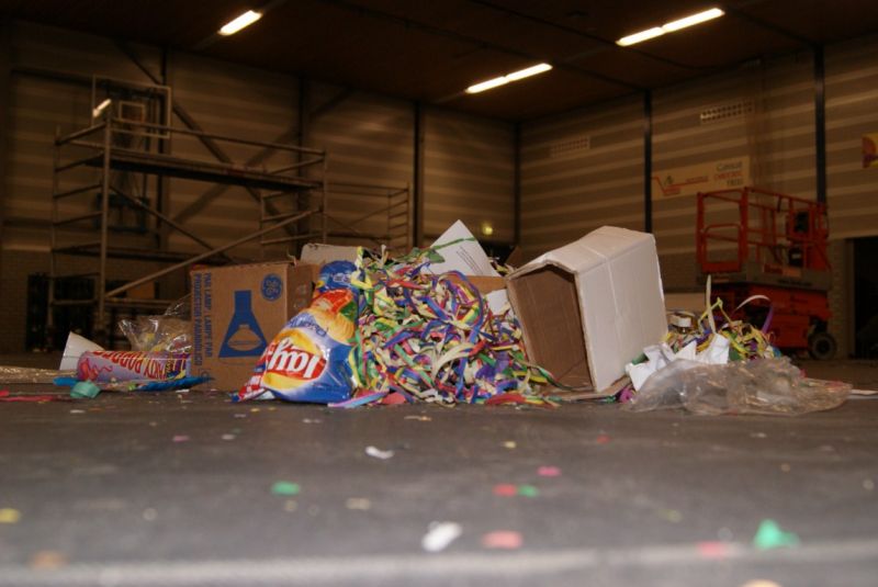 Na een mooi feestje is het opruimen nooit zo heel erg. Prins Wilson en Adjudant Hans, samen met de Raad van Elf, kersverse voorzitter Marjo Lucker en nog een aantal andere getrouwen van de Stichting Carnaval HDL waren vanochtend druk doende om de Snevelbokkenstal weer te ontkleden tot sporthal de Zaert. Vier dagen HDL gu Wild zitten erop!