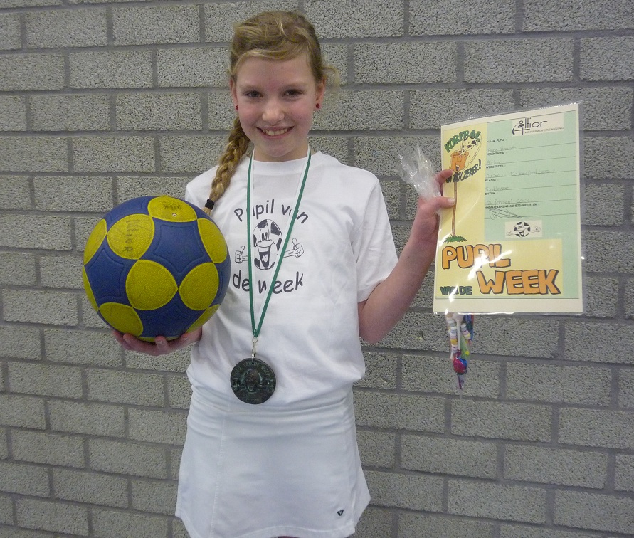 1-3. Daarna was het pauze de trainster legde nog wat uit. De tweede helft begon, ongeveer 10 minuutjes later scoorde Vera met een ver schot een doelpunt ,het stond 1-4. Vera mocht ook een strafworp nemen en die ging er net langs. De wedstrijd was voorbij en wij hadden gewonnen.