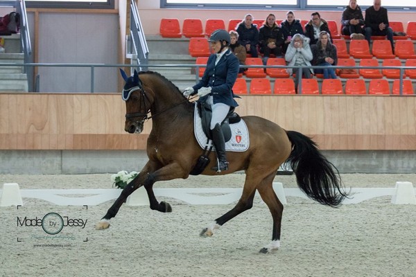 Met haar paard Wise Guy kwam ze aan de start in de Prix St George (LT). Ondanks wat spanning van haar paard bij aanvang van de proef werden ze toch mooi 12e in een groot en sterk deelnemersveld. De volgende dag kwam ze met Wise Guy aan de start in de kleine finale. Hierin moest de nog moeilijkere Intermediair 1 proef getoond worden. Dit deden ze fantastisch en werden hiermee 3e met een hoge score. Wij zijn trots op Miranda en willen haar feliciteren met dit geweldig resultaat!