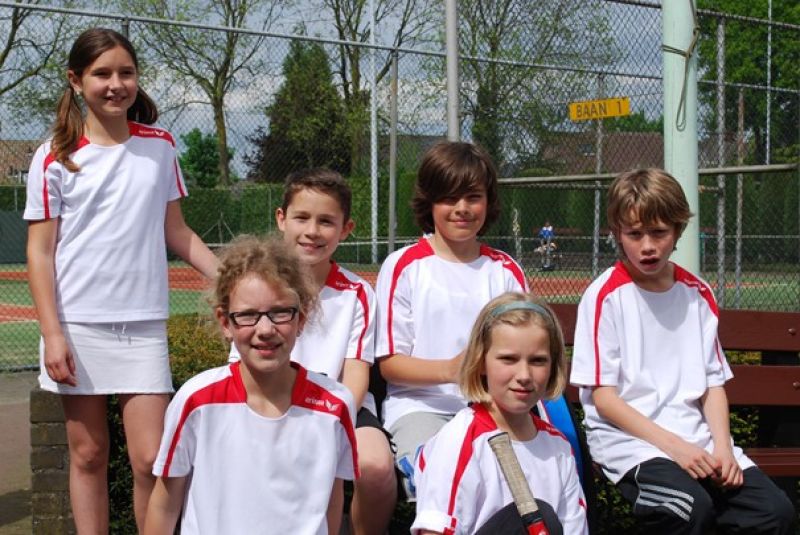 Ook het eerste mixteam t/m 12 jaar (uitkomend in de 1e klasse) speelde vandaag thuis. Dit team bestaat uit 6 spelers: Lisanne van Lankvelt, Eva Boerdonk, Pieta Rolink, Nicky Saegaert, Koen van Sijes en Thijn van Kessel. Een echt team, want wekelijks gaan ze met veel plezier met z’n 6en op pad. Ze hebben een pittige competitie. Er wordt elke keer goed gespeeld, maar helaas valt het niet mee om wedstrijden winnend af te sluiten. Vandaag een nieuwe kans tegen Berlicum. Koen en Lisanne gingen als eerste de baan op voor hun singles en Pieta en Thijn startten met de mix-dubbel. Lisanne stond lekker te spelen, maar de tegenstander was sterker. De partij werd verloren met 0-6, 2-6. Koen wist zich goed te weren. De wedstrijd ging gelijk op. Maar helaas werd de 1e set verloren met 4-6. Daarna kwam Koen goed in z’n spel en wist de 2e set naar zich toe te trekken met 6-1. En dus een tiebreak (als 3e set). Gewonnen en dus 1e punt binnen! Ook de mix was een spannende (en lange) wedstrijd. De beide teams waren goed aan elkaar gewaagd. Pieta en Thijn knokten voor de punten, ze zaten dicht bij winst, maar uiteindelijk trok Berlicum de punten naar zich toe: 4-6, 5-7.