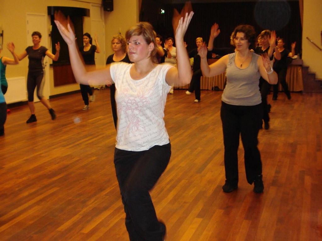 met Zumbalessen. Zumba is een fitness workout met danspassen op Latijns-Amerikaanse muziek.