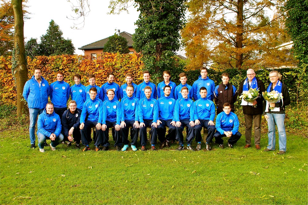 Het team nam onlangs de tenues in ontvangst. Voorzitter Peer Verkuijlen benadrukte nog eens dat het niet vanzelfsprekend is dat ondernemers in deze wat lastige economische tijd zomaar een bijdrage kunnen leveren aan het verenigingsleven. "Gelukkig hebben we als voetbalvereniging nog niet te klagen maar ook wij merken dat het lastiger is geworden. Dat verplicht ons nog meer om een goede naam uit te blijven dragen zodat de ondernemers die ons ondersteunen dat ook zien en er in die zin wat voor terug krijgen". "Kleding voor meer dan 30 teams is een grote kostenpost en daarom is steun van sponsoren niet alleen welkom maar zeker ook noodzakelijk.