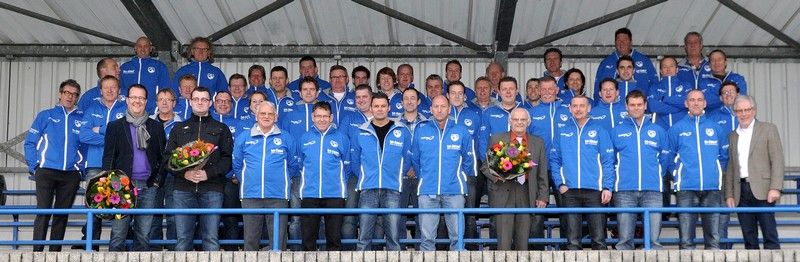 120110ClubjacksDankzij een viertal sponsoren en een bijdrage van de Vrienden van Voetbalvereniging Heeswijk deed zich de unieke gelegenheid voor dat alle leiders en begeleiders bij Voetbalvereniging Heeswijk in een nieuwe clubjack gestoken konden worden. Nog niet eerder kwam zo´n mooie situatie voor dat alle vrijwilligers zich konden presenteren in dezelfde outfit. Afgelopen zondag werden ze feestelijk uitgereikt en gingen ze massaal op de foto.