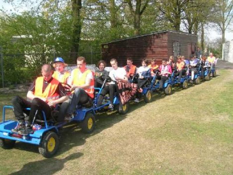 Op achttien skelterfietsen achter elkaar maakte het team van Avesteyn C1 zaterdag een feestelijke tocht door Heeswijk-Dinther om hun kampioenschap te vieren. Met het ongeval met de platte kar in Boekel nog vers in het geheugen, had het jeugdbestuur gekozen voor deze veilige manier.