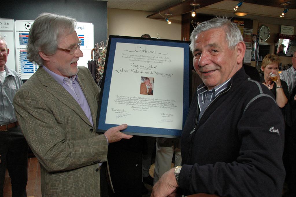 penningmeester van de vereniging. Het is de hoogste eretitel van de vereniging voor personen die zich bijzonder verdienstelijk maken. Vanwege zijn enorme inzet en grote verdienste voor de club is tijdens een druk bezochte bijeenkomst de oorkonde aan Cees uitgereikt.