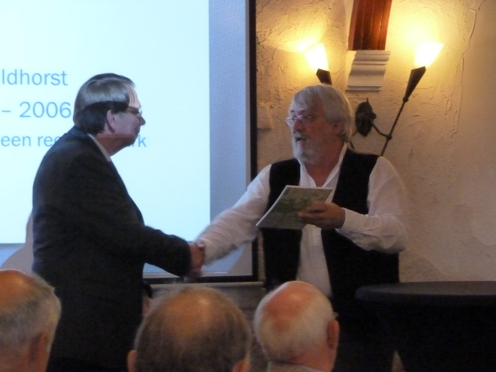 In 1956 werd door de Ondernemersvereniging van Heeswijk stichting De Wildhorst opgericht. Bart van Schijndel van Heemkundekring De Wojstap maakte hier in opdracht van stichting Het Geleer een boekwerk van. Bart overhandigde dit boekwerk vanmiddag aan Jan Nelissen, de voorzitter van het Geleer.