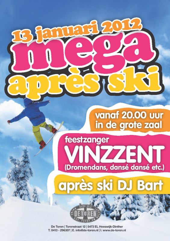 De MEGA Aprés Ski party start om 20.00 uur. Deze avond is gratis te bezoeken maar let wel, vol=vol!
