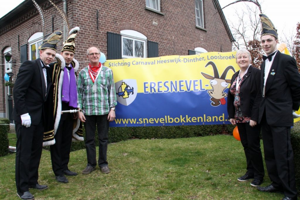 Eresnevelgeit Wilma Brekelmans werd vanmiddag verrast door een bezoek van Prins Bart d'n Urste met zijn hele gevolg. Een spandoek voor het huis maakt elke voorbijganger duidelijk dat hier een bijzonder iemand woont.