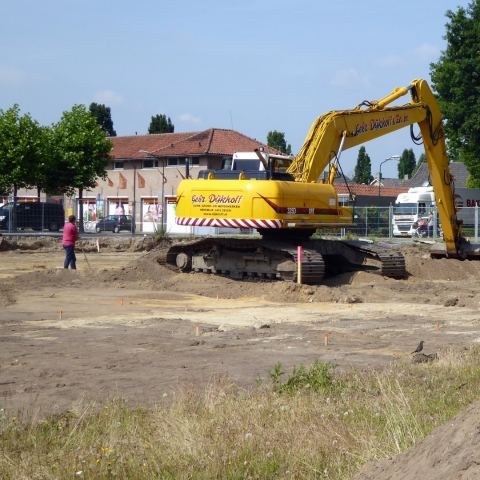 Op dit moment is Aannemersbedrijf Gebr. Dijkhoff BV bezig om de grond uit te graven waar een supermarkt van 1200 m2 wordt gebouwd. Daarboven komen woningen. Klik hier voor foto's.