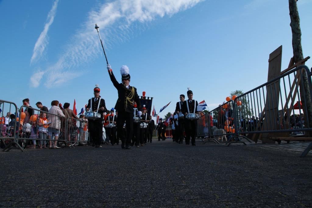 Het was deze eerste Koningsdag een stralende dag. Met versierde fietsjes gingen veel kinderen met hun ouders vanuit de Dintherse Servatiuskerk naar het Plein 1969, wat voor de gelegenheid was omgedoopt tot het Oranjeplein. Het Sint Barbaragilde ging de bont gekleurde stoet voor, terwijl harmonie Sint Servaes de optocht sloot met haar tamboermaître Fred Verkuijlen voorop. Ook vanuit Heeswijk vertrok een soortgelijke stoet met het Sint Willibrord gilde en de Koninklijke Fanfare Sint Willibrord.