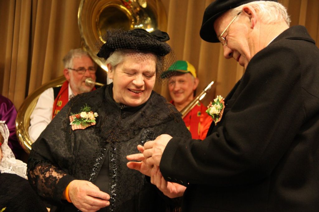 De ambtenaar van de Burgerlijke Stand, de heer Ad van Schijndel, moest eerst nog wel vijf bezwaren ongegrond zien te verklaren. De bruidegom kreeg het toch wel een beetje benauwd en riep : ‘Kunde er nie ’n paar naar huis sturen?’
