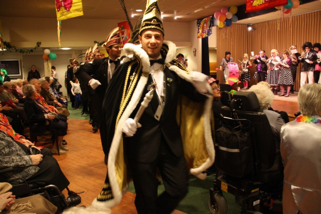Een volle zaal bewoners en genodigden hebben vrijdagavond in Cunera/De Bongerd genoten van een heerlijk carnavalsfeest. Met muzikale begeleiding van de Kornuiten kwam Prins Bart d'n Urste op bezoek met heel zijn gevolg en de dansmariekes. Op een carnavaleske manier werden zij welkom geheten door directeur Annemiek van de Rijdt. In polonaise trok het hele gezelschap door de zaal.