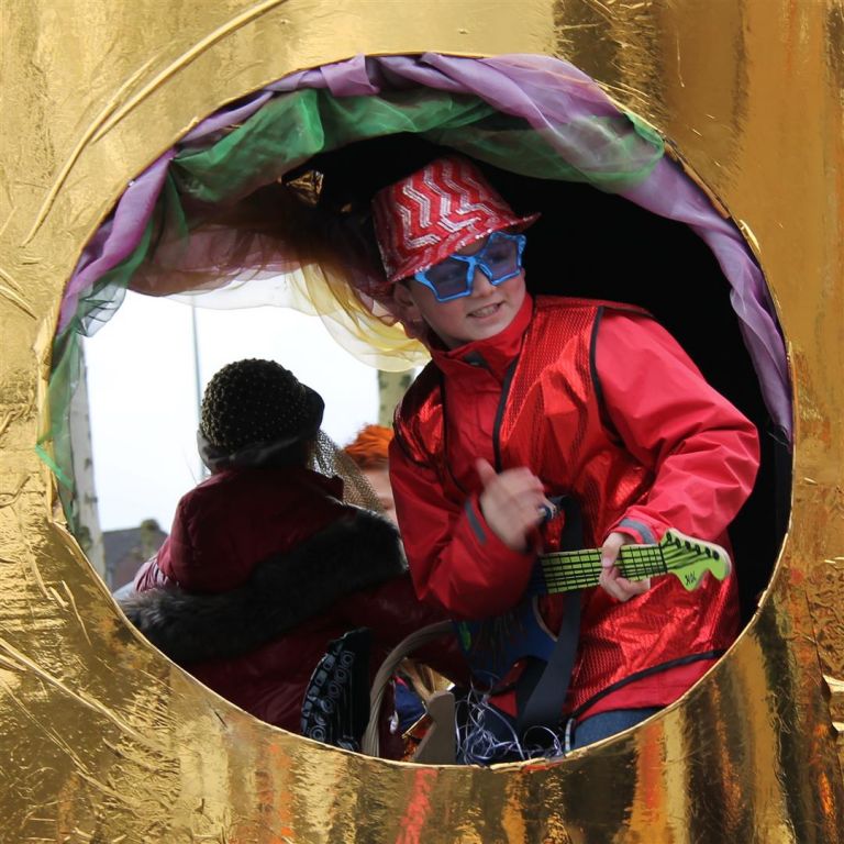 Rock en Roll in Heeswijk Dinther. Het thema van de jeugdcarnavalsoptocht kwam overal op creatieve manieren terug in de jeugdcarnavalsoptocht.