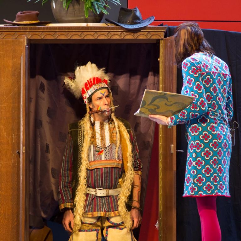 Zondagmorgen om elf uur zat de aula van Gymnasium Bernrode bomvol voor de tweede uitvoering van het toneelstuk 'Indiaan in de kast'. Onder het publiek natuurlijk veel kinderen met ouders maar ook veel grootouders. Het verhaal van de 'Indiaan in de kast' wordt gespeeld door een toneelgezelschap en de bijbehorende muziek werd verzorgd door het opleidingsorkest en de jeugdslagwerkgroep van de Koninklijke Fanfare Sint Willibrord.