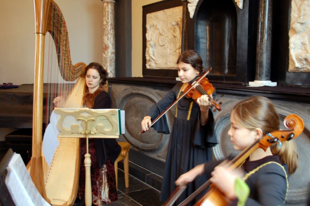 Fleur van Lith winnares Prinses Christina Concours: Harp. De jonge muzikanten hebben veel meer bijzondere prijzen met hun muzikale prestaties veroverd. De prachtige klanken en het zichtbare plezier van de jonge mensen bracht een mooie sfeer in de wapenzaal van kasteel Heeswijk.