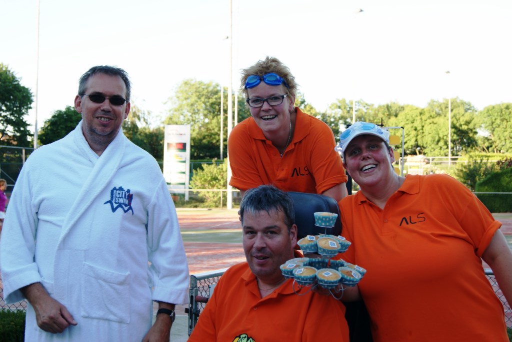 Vriendengroep de Tuinders neemt voor het tweede jaar op rij deel aan de Amsterdam City Swim op zondag 8 september a.s. Miranda Smits, Marko Konings, Sabine van Lamoen en Miranda van Asseldonk zullen die dag door de grachten van Amsterdam zwemmen. Hiermee halen zij geld op voor het onderzoek naar de behandeling van ALS-patiënten en willen zij hun vriend en partner van Miranda Twan Smits moreel ondersteunen. Tijdens het vakantietoernooi van tennisvereniging de Balledonk zamelen zij geld in voor dit doel en proberen ze donateurs te werven. Doet u mee?