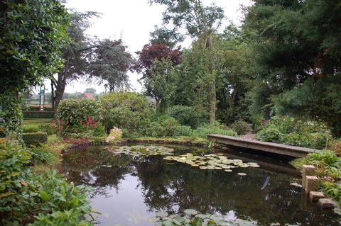 Al bijna veertig jaar woont de familie op deze plek in Heeswijk. En hebben zij deze prachtige tuin helemaal zelf met veel liefde, creativiteit en hard werken aangelegd. Opvallend zijn de vele buxusheggetjes in allerlei vormen, die allemaal zelf gestekt zijn en in die tientallen jaren uitgegroeid zijn tot dit resultaat. Dat betekent wel elke dag heggetjes scheren om de mooie vormen te behouden. Ook de waterpartijen hebben een grappige oorsprong…de eerste vijver ontstond doordat de olietank opgeruimd werd en er een diep gat achter bleef. Een van de zonen zag meteen een reden om het te vullen met water ! En zo volgden er nog meer waterpartijen.