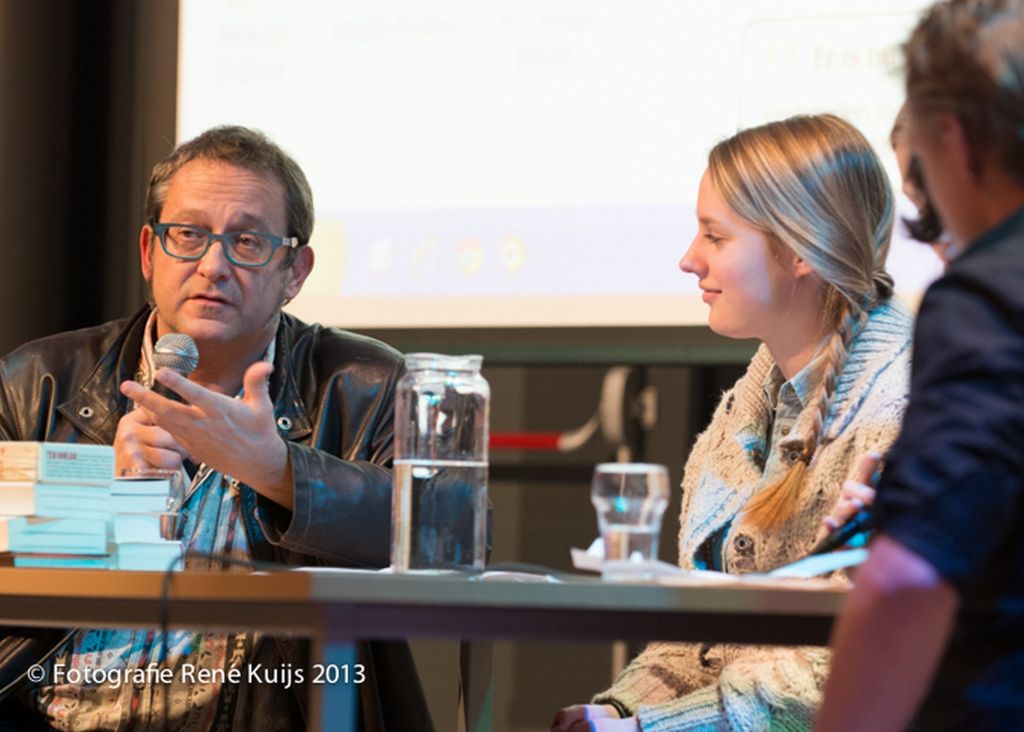 Vier leerlingen van klas 4 hadden 50 vragen voorbereid. Na acht vragen en evenzoveel rijke, breed uitgesponnen antwoorden greep BKK voorzitter Mathieu Bosch in. Het interview zou door de omvangrijk uitwaaierende reacties van Tom Lanoye, indien alle 50 vragen gesteld zouden worden, tot in lengte van dagen duren. En omdat er ook nog door de leerlingen samengestelde filmpjes op het programma stonden, en er na de pauze een voordracht van de auteur was gepland, werd het interview gereduceerd tot 12 vragen.