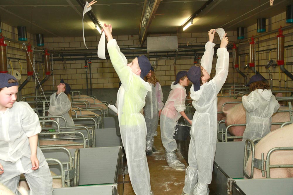 Deze vraag kregen 28 leerlingen van groep 7a van B.S. 't Palet voorgelegd door Harold van der Zanden. De kinderen waren vrijdagmiddag te gast op zijn varkensboerderij aan de Berg en Dalseweg 6a. Zoon Rick die ook in klas 7a zit, vond het een goed idee zijn medeleerlingen te informeren over hoe het er nu werkelijk aan toe gaat op een varkensbedrijf.