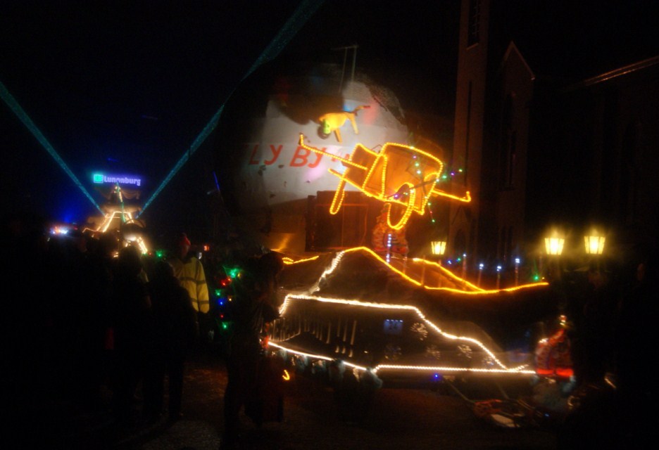 Vanavond trok een bonte stoet wagens en loopgroepen door Loosbroek, die veelal met gekleurde lichtjes de aandacht van het talrijk opgekomen publiek probeerde te trekken. De temperatuur was rond het vriespunt en gedurende de hele optocht viel er lichte sneeuw. Dat kon echter de pret van de deelnemers niet drukken. Met de start in de Dorpstraat ging de tocht via de Krommedelseweg, de Pastoor de Grootstraat, de Schaapsdijk en de Molenhoeven weer terug naar Kerkzicht, wat tijdens het Carnaval is omgedoopt in Kreugezicht.